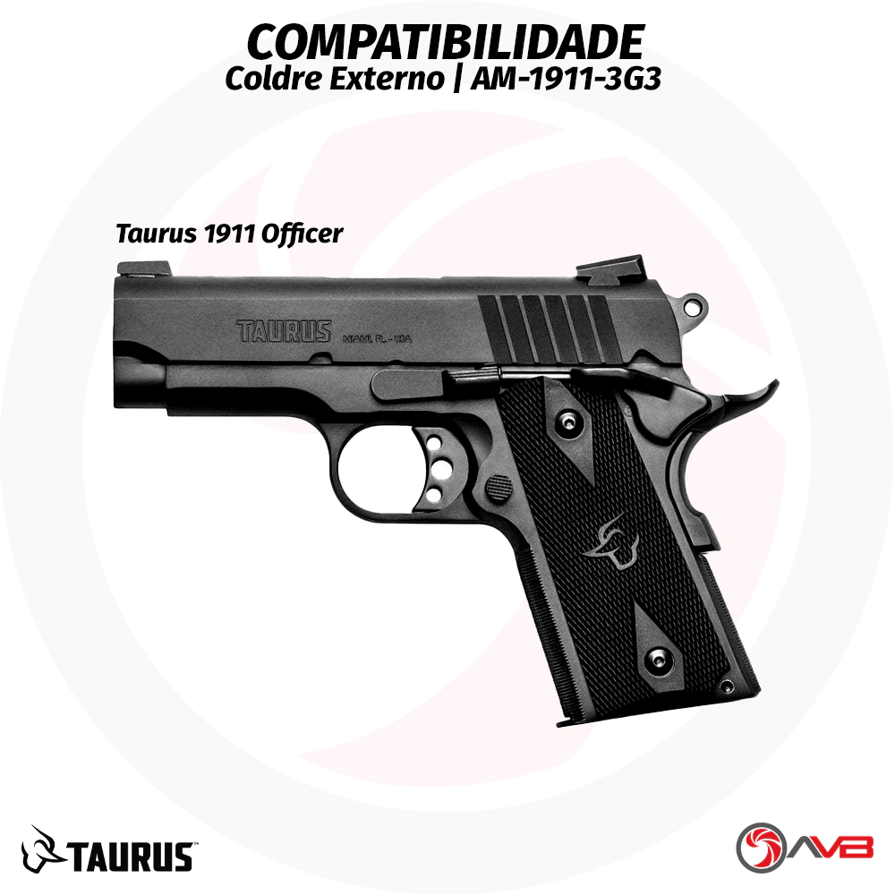 Coldre de Polímero de alta resistência com trava no guarda mato liberado pelo dedo indicador.