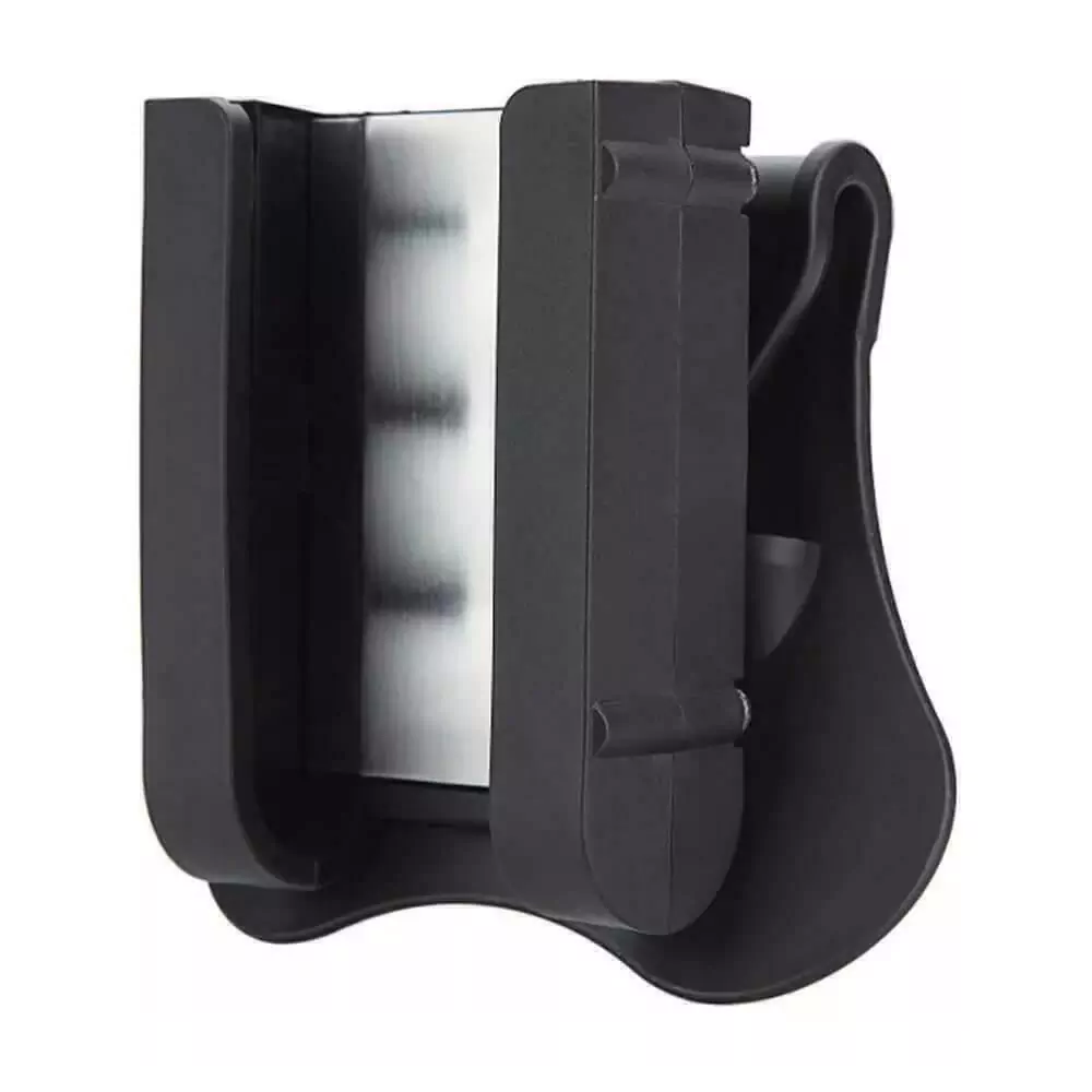 É um modelo rotativo compatível com plataformas de perna, M.O.L.L.E., passadores de cinto tático e suportes modulares